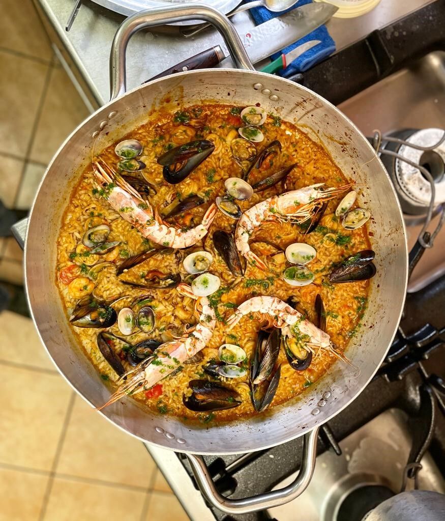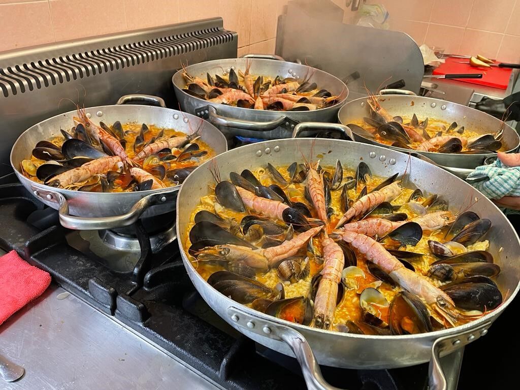 in esclusiva alla trattoria Lupi puoi ordinare prenotando il giorno prima la vera e gustosa paella Valenciana di solo pesce o mista con carne.